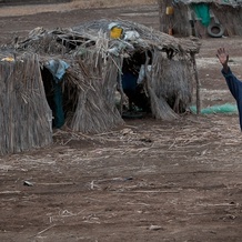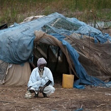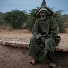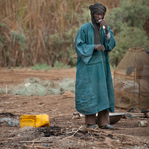 Mieszkaniec Mauretanii przed chatą